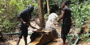 Au Gabon, de nombreux cas de pollution au mercure ont été documentés par la presse nationale à l’issue de missions de contrôles de l’administration publique. En janvier 2024, le démantèlement d’un réseau d’orpailleurs illégaux dans un site forestier par l’Agence nationale des parcs nationaux (ANPN) a mis en scène l’utilisation du mercure dans le processus d’extraction de l’or. Cette pratique, assez courante dans l’orpaillage artisanal illégal, n’est pas isolée. De nombreux cas similaires ont déjà été documentés par l’ANPN lors des missions similaires de terrain. Pour l’ANPN, « le mercure forme un amalgame avec l’or, mais une partie significative est libérée dans l’environnement. Ce mercure peut contaminer l’eau, les poissons et, ultimement, la chaîne alimentaire, provoquant des risques graves pour la santé humaine et la vie aquatique ».