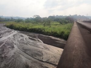 À Moanda, l’un de ces points saute aux yeux et fait le lit des critiques. Il s’agit du cas de la saturation en fine de manganèse de la rivière Moulili, un dossier vieux de plusieurs décennies et qui continue d’alimenter les critiques en dépit des annonces de la Comilog visant à restaurer cette rivière. Le cas de cette rivière illustre le plus gros dommage causé par l’activité d’exploitation du manganèse. Et pour cause, jadis cours d’eau ordinaire, avant l’implantation de la laverie de la Comilog, la Moulili est aujourd’hui une rivière chargée en fines de manganèse. « C’était une rivière normale. Les populations s’y baignaient et recueillaient de l’eau pour les usages courants. À cause des fines de manganèse, il n’est plus possible d’y puiser de l’eau ni même de s’y baigner. La rivière n’existe désormais plus que de nom en raison des dépôts de manganèse accumulés au fil des années », explique un dignitaire de Moanda que nous nommerons Franck.